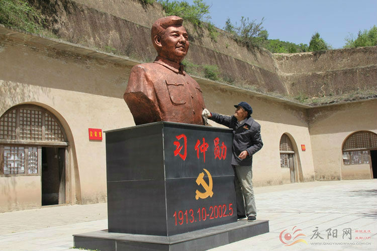 梅懷成認(rèn)真擦拭坐落在遺址院落中的習(xí)仲勛雕像。