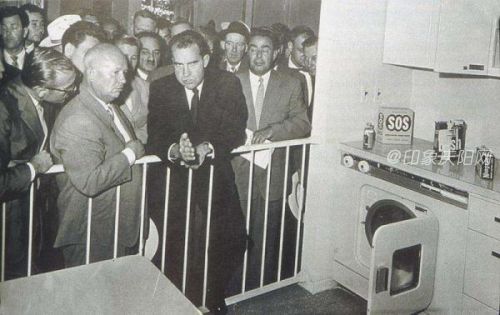 那個(gè)廚房是個(gè)很典型的美國(guó)家庭現(xiàn)代化廚房,和廚房相連的住宅也是很典型的美國(guó)中產(chǎn)階級(jí)家庭的住宅,里面擺滿了現(xiàn)代化的家具和家用電器,這些消費(fèi)品在美國(guó)是一般中產(chǎn)家庭可以享用的,但在蘇聯(lián)卻很難覓得。很多蘇聯(lián)的參觀者對(duì)這些消費(fèi)品表現(xiàn)出了強(qiáng)烈的羨慕和向往,赫魯曉夫則被激發(fā)出要和美國(guó)一爭(zhēng)高下、一決雌雄的豪言壯語:“再過七年我們會(huì)達(dá)到美國(guó)同樣的水平,當(dāng)我們趕上和超過你們的時(shí)候,我們將在前方向你們揮手。”[19]