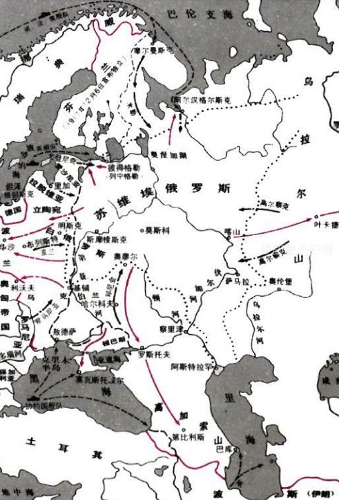 當(dāng)時(shí)的蘇維埃政權(quán)面臨著“四面”楚歌的危難局面,第一面是國(guó)內(nèi)的白軍反抗,第二面是國(guó)際盟軍14個(gè)國(guó)家的出兵干涉,第三面是周邊十多個(gè)地區(qū)的非俄羅斯民族的獨(dú)立運(yùn)動(dòng),第四面是與波蘭的蘇波戰(zhàn)爭(zhēng)。