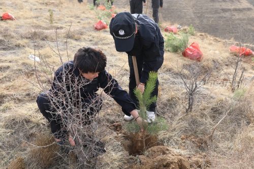 植樹現(xiàn)場,廣大民警不顧沙塵天氣的影響,不畏環(huán)境艱險,在陡峭的山崖洼地上踴躍植樹。民警們嚴格按照植樹的要求和標準,挖坑、放苗及培土,分工協(xié)作,配合密切,干勁十足,認真地完成每一道栽植工序,將一顆顆耐旱的油松幼苗栽植下去。廣大民警職工們充分發(fā)揚吃苦耐勞和持續(xù)作戰(zhàn)的優(yōu)良作風,經(jīng)過一上午的辛勤勞動,在石家塬村的荒山造林區(qū)栽植了1500余株油松幼苗,以實際行動為環(huán)江生態(tài)建設貢獻自己的一份力量。
