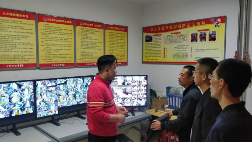 圖四:工作人員聽取消防負責人講解消控室運行流程