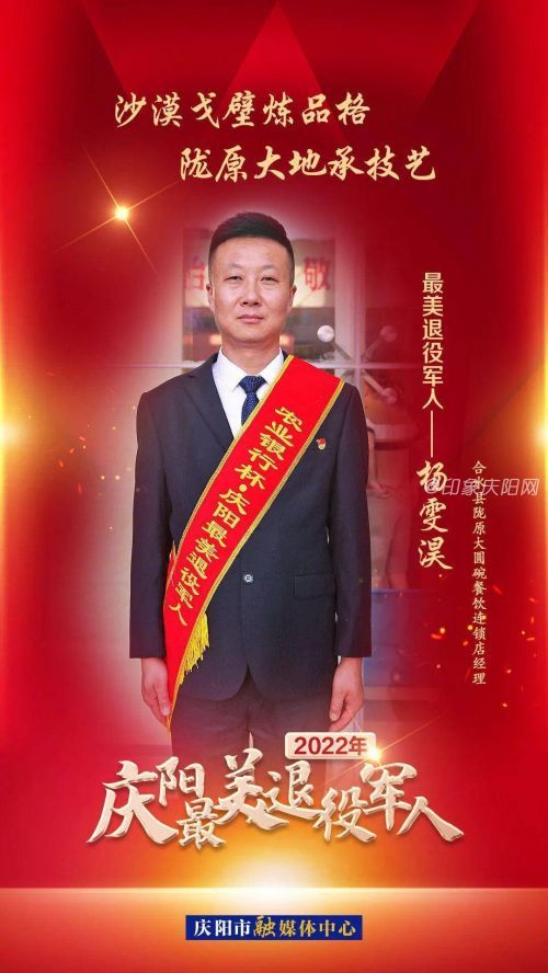 摘要:楊雯淏,男,1982年7月出生,中共黨員,2000年12月入伍,2008年12月退役,獲優(yōu)秀士兵6次,榮立三等功1次,現(xiàn)為合水縣隴原大圓碗餐飲連鎖店總經(jīng)理。