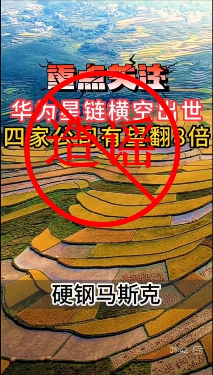 網(wǎng)傳“華為將發(fā)射1萬枚6G移動(dòng)低軌衛(wèi)星”純屬造謠,造謠者毫無根據(jù),無事生非,在多個(gè)平臺(tái)、賬號(hào)推送相同信息擴(kuò)散,請勿信勿傳,果斷舉報(bào)。