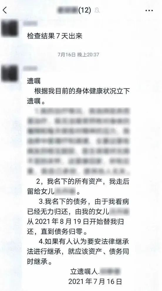 女子微信群留遺囑給女兒