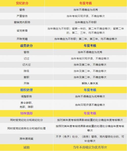 一、受黨內(nèi)警告處分的當(dāng)年,參加年度考核,不得確定為優(yōu)秀等次。