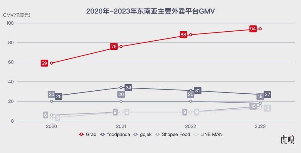 墨騰創(chuàng)投最新發(fā)布的《東南亞送餐服務(wù)業(yè)報告》指出,截至2023年底,Grab 是東南亞最大送餐平臺,占整體市場商品交易總額的55%(94億美元)。foodpanda 及 gojek 分占15.8%及10.5%,其市場商品交易總額分別下跌12.9%及10%。蝦皮(Shopee Food)及 LINE MAN 各占8.8%及8.1%,蝦皮成長約6成,LINE MAN在泰國亦取得雙位數(shù)增幅。