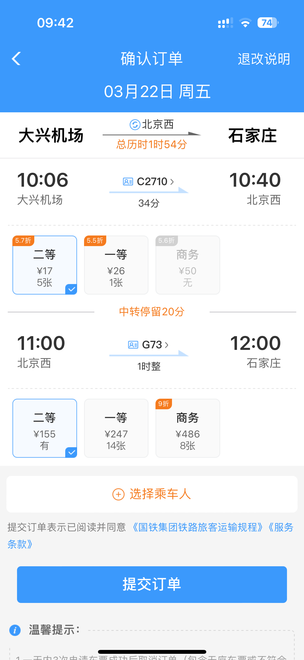 近期,12306平臺悄然上線“同車換乘”,大興機場站至石家莊站間可以通過這一方式實現(xiàn)“直達”。12306手機客戶端截圖