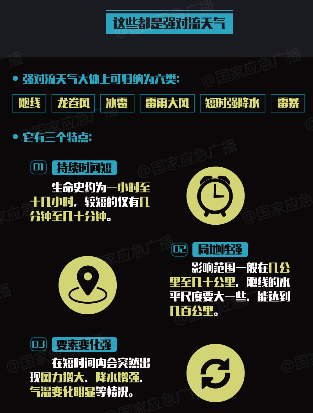 強(qiáng)對流天氣是指發(fā)生突然、天氣劇烈、破壞力極強(qiáng),常伴有雷雨大風(fēng)、冰雹、龍卷風(fēng)、颮線、短時強(qiáng)降雨等強(qiáng)烈對流性災(zāi)害天氣,是災(zāi)害性天氣之一。