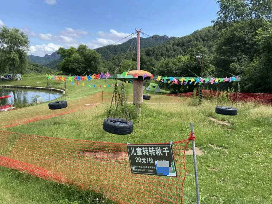在池子旁邊,還有一個鐵鏈子與二手輪胎組成的轉(zhuǎn)轉(zhuǎn)秋千: