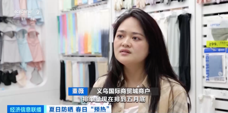 義烏國際商貿城商戶 董薇:以前都是夏天紫外線很強的時候才會來購買這個產品。現在春天比如說有太陽或者出去玩都會拿出來用。