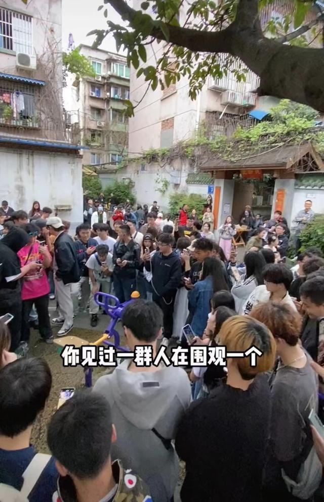 據(jù)網(wǎng)友發(fā)布的視頻,該居民區(qū)樓下的健身器材場(chǎng)地被眾人圍住排隊(duì)打卡拍照。有不少人在唱歌或大喊口號(hào),還有人進(jìn)行現(xiàn)場(chǎng)直播。