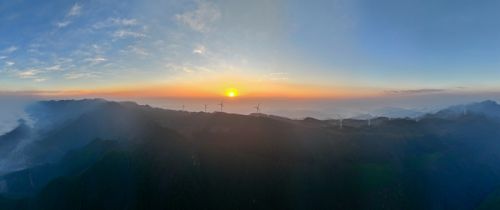 這是2024年1月10日在重慶市石柱土家族自治縣魚池鎮(zhèn)千野草場(chǎng)拍攝的風(fēng)力發(fā)電機(jī)組(無(wú)人機(jī)全景照片)。新華社記者 黃偉 攝