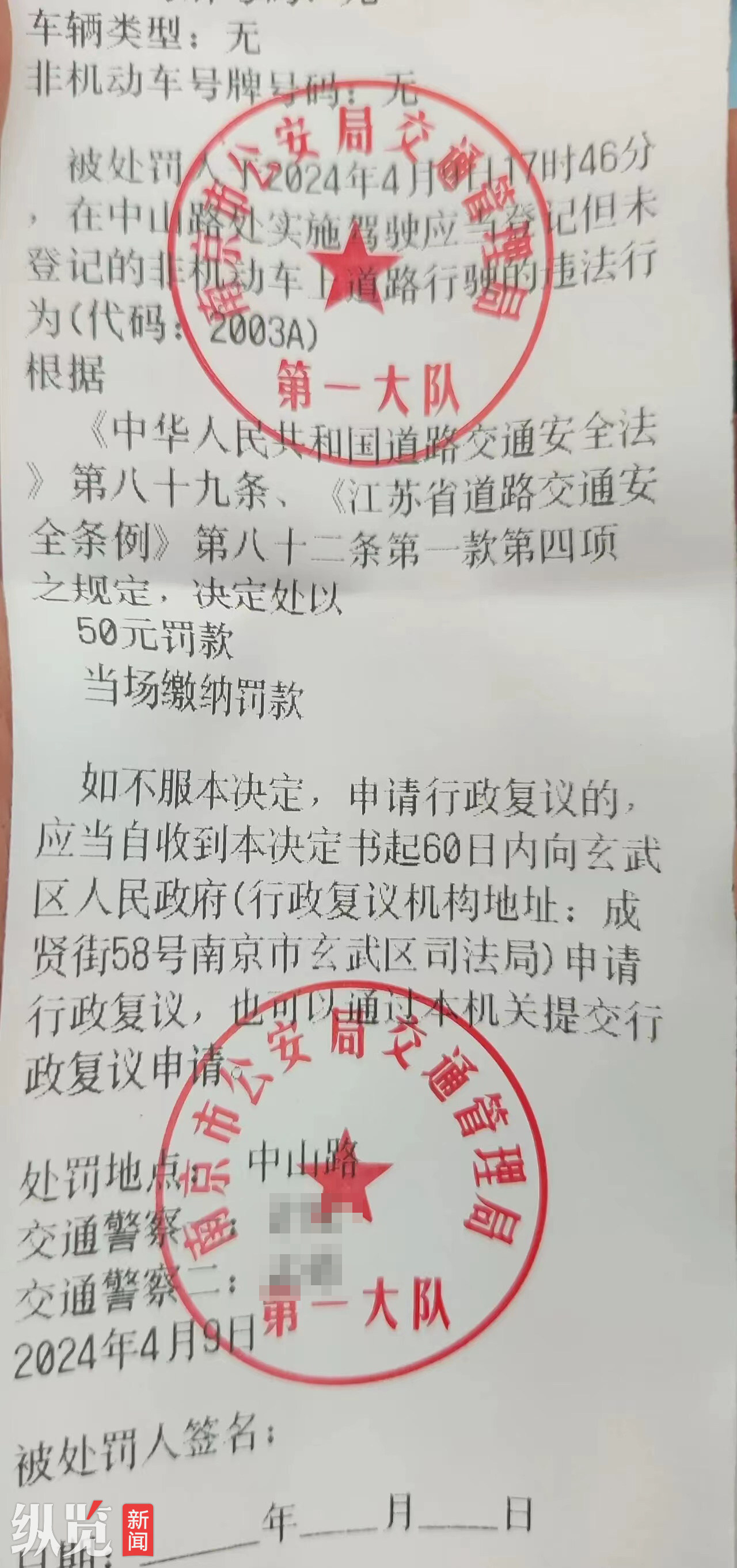 縱覽熱點 | 江蘇南京一市民稱騎自行車上路因無牌被罰50元,當?shù)亟还懿块T回應