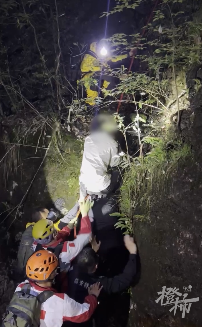 △今天清晨將被困人員接下懸崖