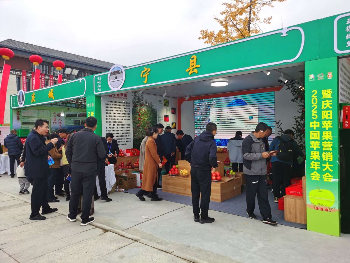 在展陳方面,寧縣展館精心布置,集中展出了瑞雪、爵士、紅星、皇后、秦脆、米奇拉、紅思尼克、宮崎富士、煙富3號等十余種本地優(yōu)質(zhì)蘋果,吸引了眾多參會者駐足品鑒。同時,展館內(nèi)通過視頻展示、現(xiàn)場講解以及背景資料介紹等多種形式,全面呈現(xiàn)了寧縣蘋果從種植到銷售“科技賦能”“產(chǎn)業(yè)富民”的全產(chǎn)業(yè)鏈發(fā)展成果。