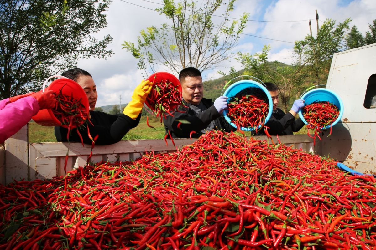 “在家門口摘辣椒,一天能賺一百多元,既顧了家,又掙了錢,日子更有奔頭了!”村民王錄子高興地說。