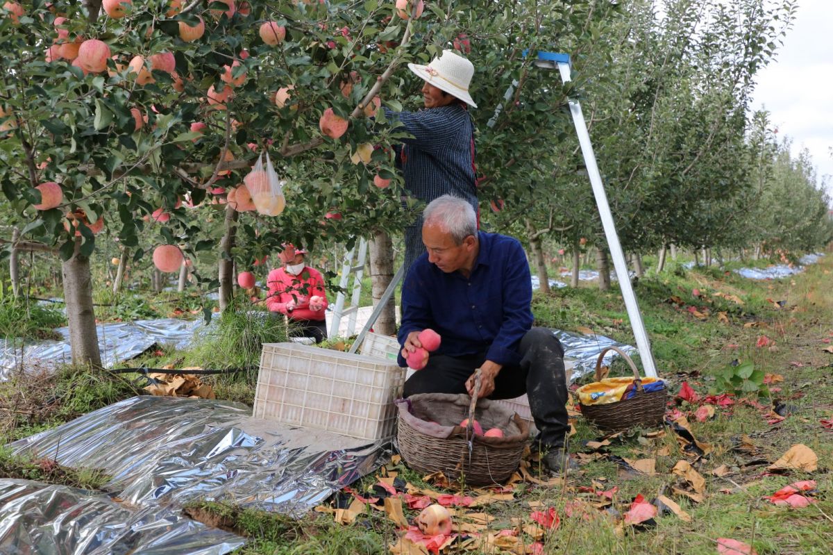 寧縣瓦斜鄉(xiāng)東風(fēng)村果農(nóng)正在采摘蘋果