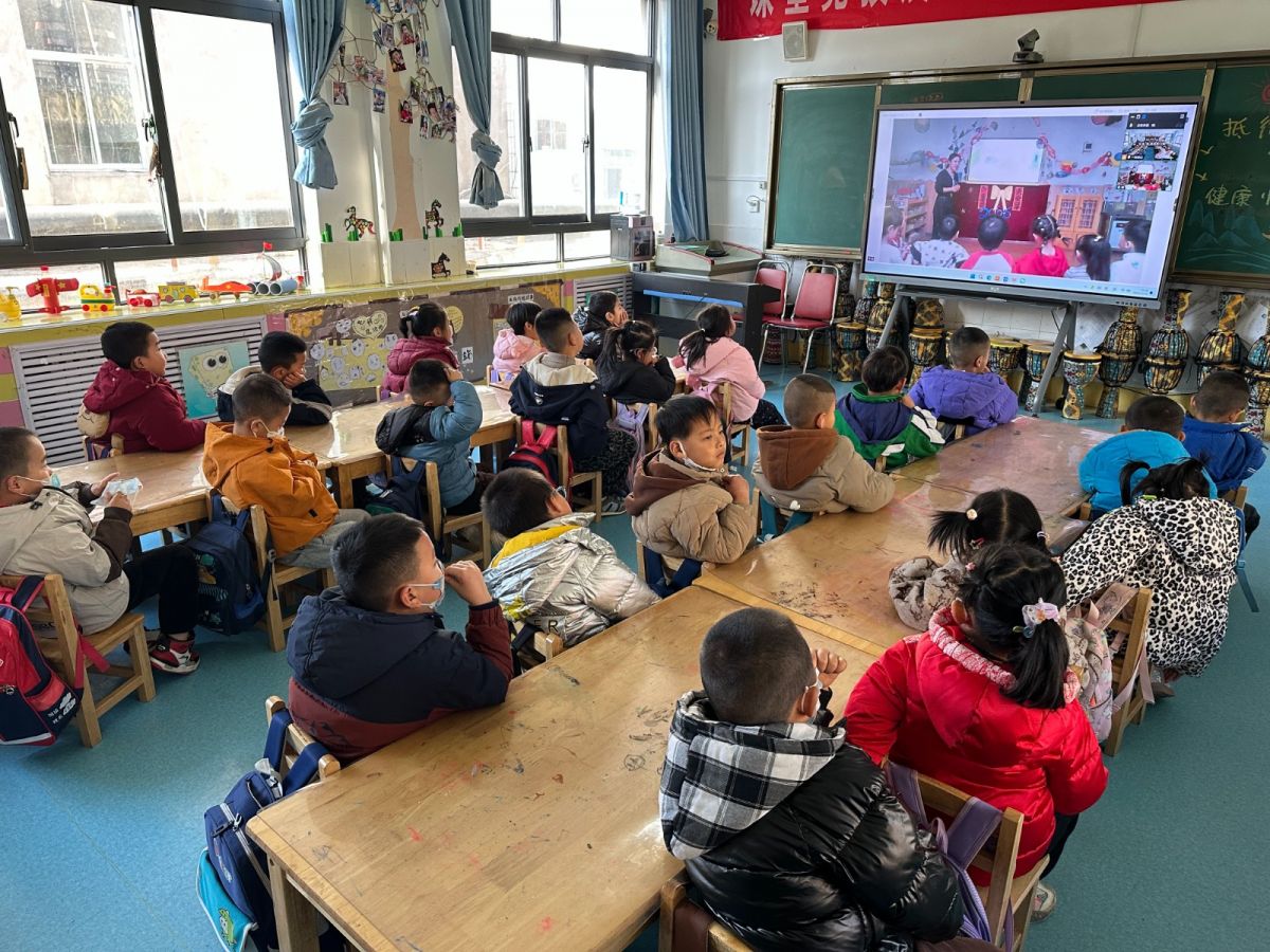 寧縣縣城幼兒園的孩子們正通過線上云教研和天津市河?xùn)|區(qū)鳳凰幼兒園的孩子們一起上課