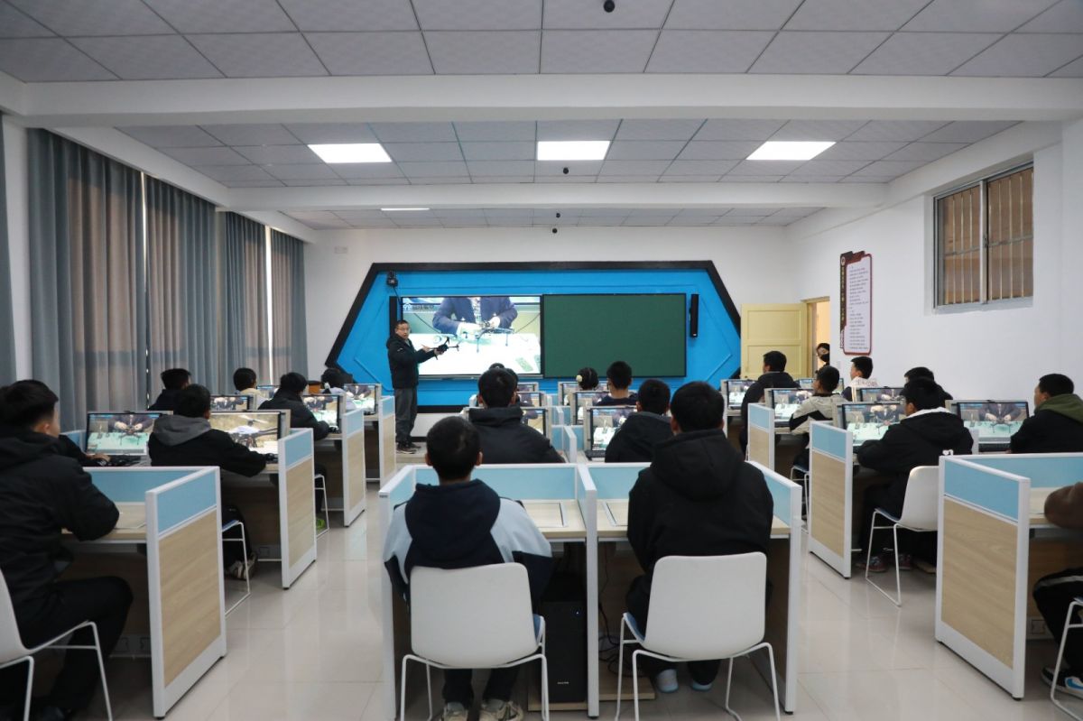 寧縣職專學(xué)生正在天津市河?xùn)|區(qū)援建的無人機(jī)實(shí)訓(xùn)教室上課